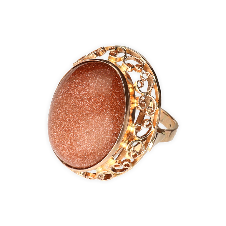 Goudsteen edelsteen wordt niet door de natuur gevormd maar door de mens zelf gemaakt. Bestaat uit synthetisch glas met ingesloten kleine goudkleurige metalen. Deze veroorzaken de schitteringen in het kristal.