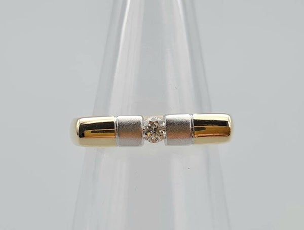 Gouden bi-color ring met diamant. Maat: 17.1. 2023/163.