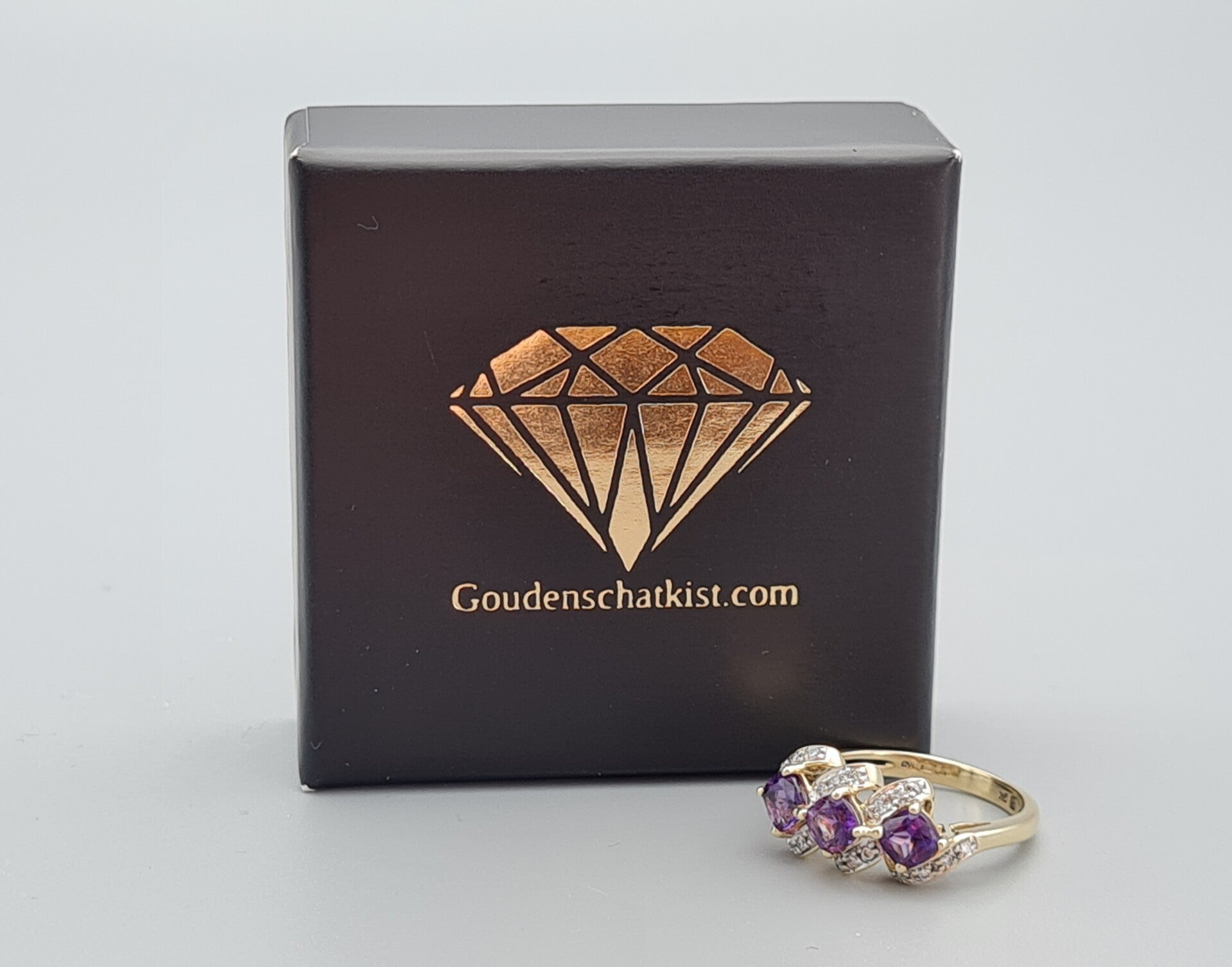 Vintage ring met edelsteen amethist en diamanten. 2023/206