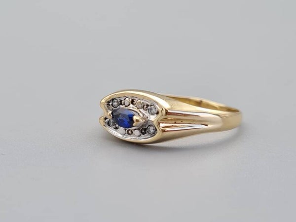 Gouden vintage ring met edelsteen saffier en diamant. 2023/214