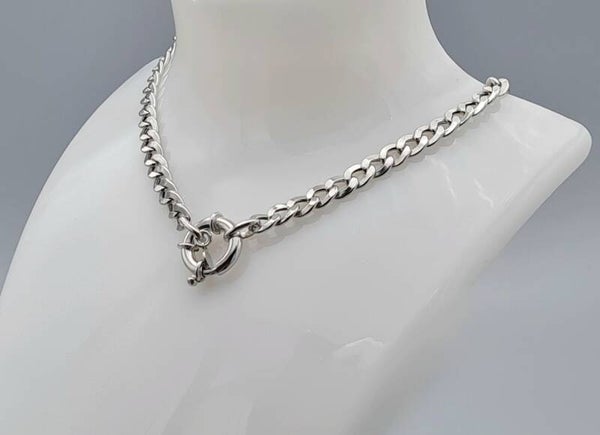 Zilveren collier gourmette 4-zijdes geslepen met groot springslot. A7