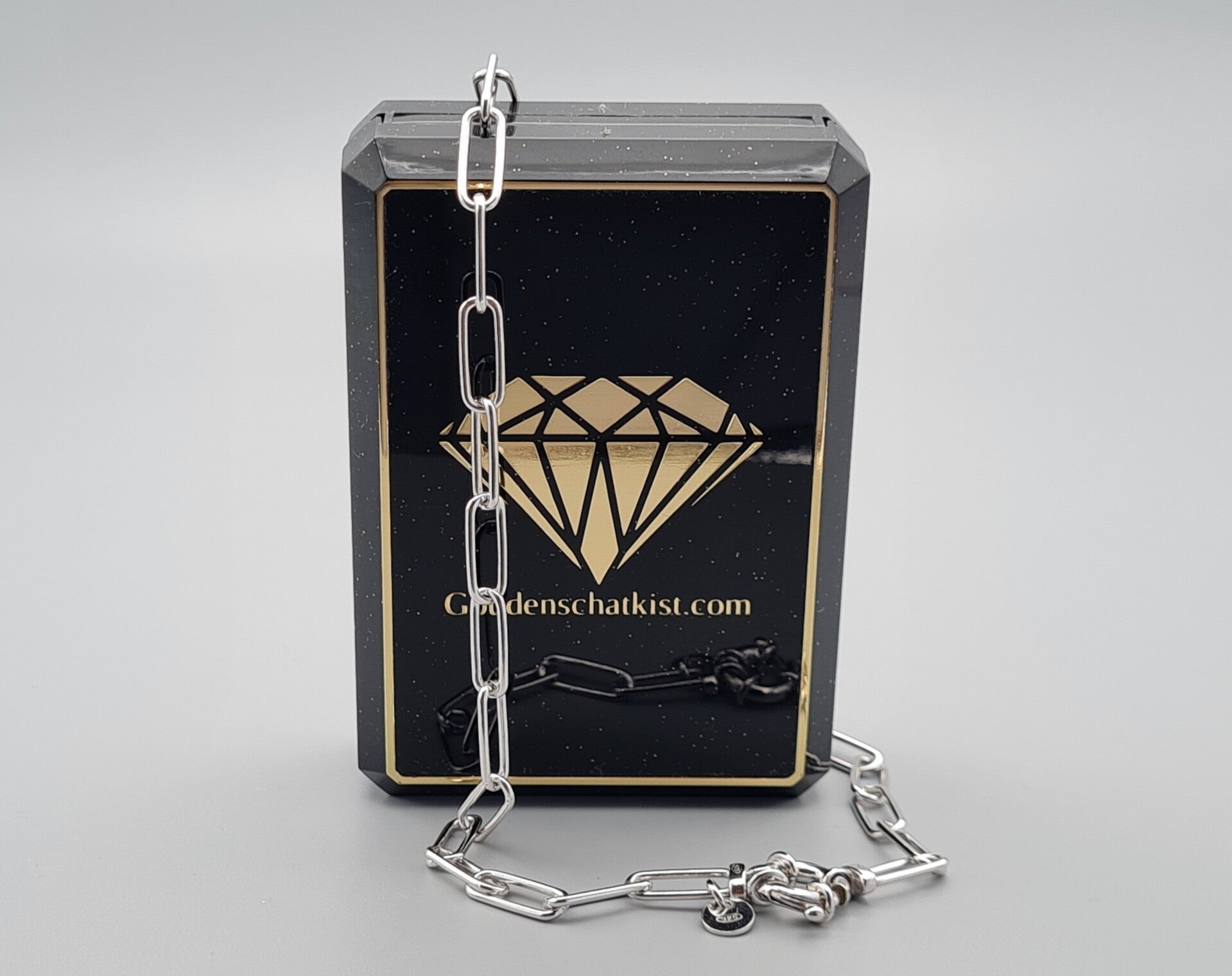 Zilveren collier paperclip ronde buis met groot springslot. A6