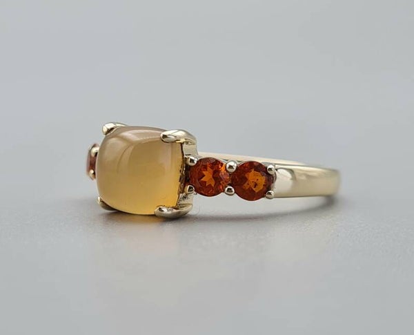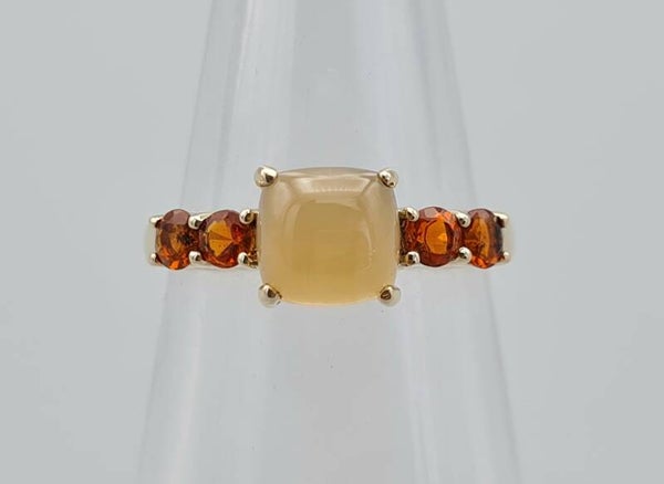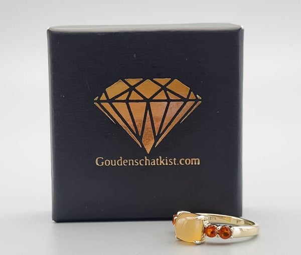 Vintage ring met edelsteen jelly opaal en vuur opaal. 2023/283.