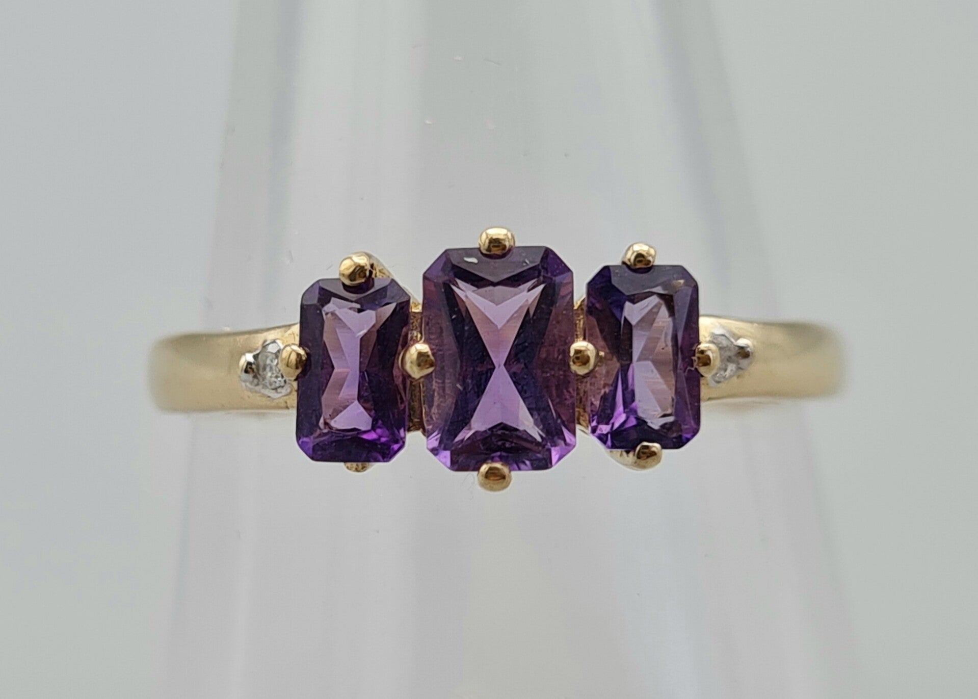 Vintage ring met edelsteen amethist en diamanten. 2023/284.