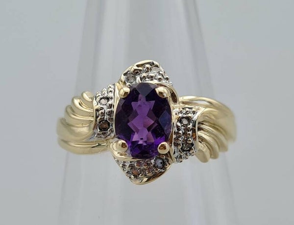 Vintage ring met edelsteen amethist en diamanten. 2023/287.