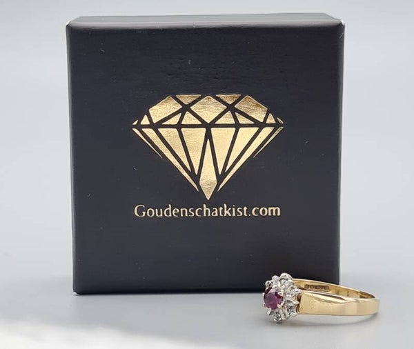 Vintage ring met edelsteen robijn en diamant. 2023/292.