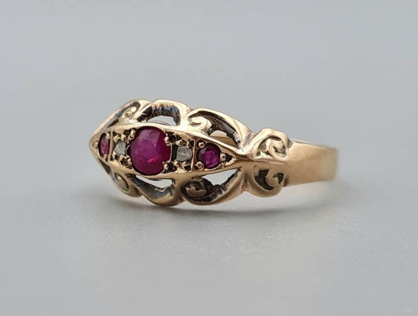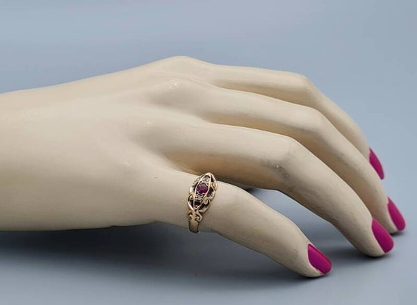 Vintage ring met edelsteen robijn en diamant. 2023/337.