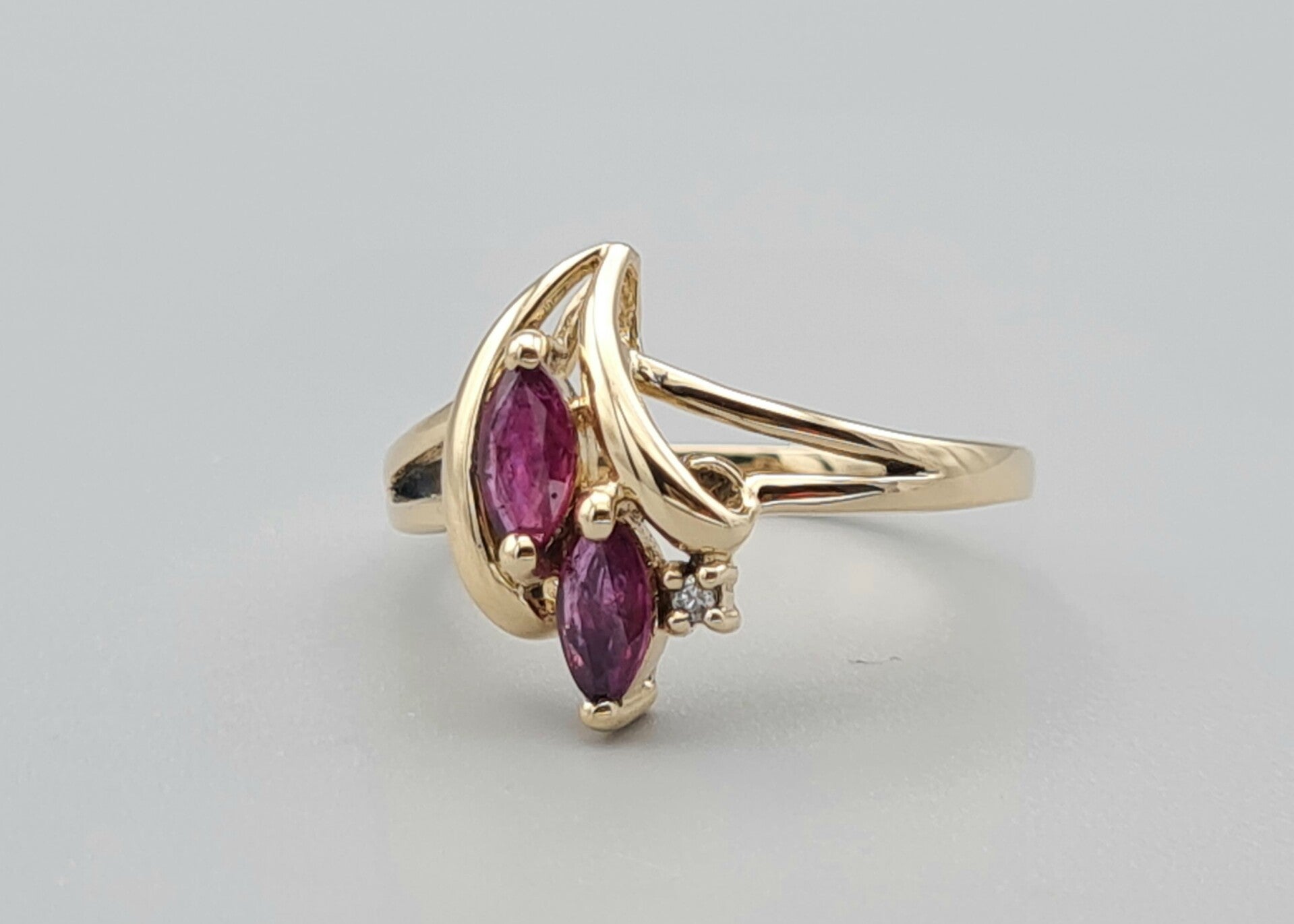 Vintage ring met edelsteen toermalijn en diamant. 2023/401.
