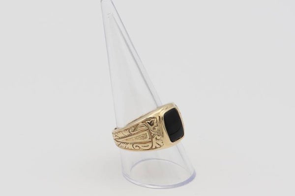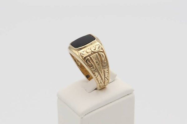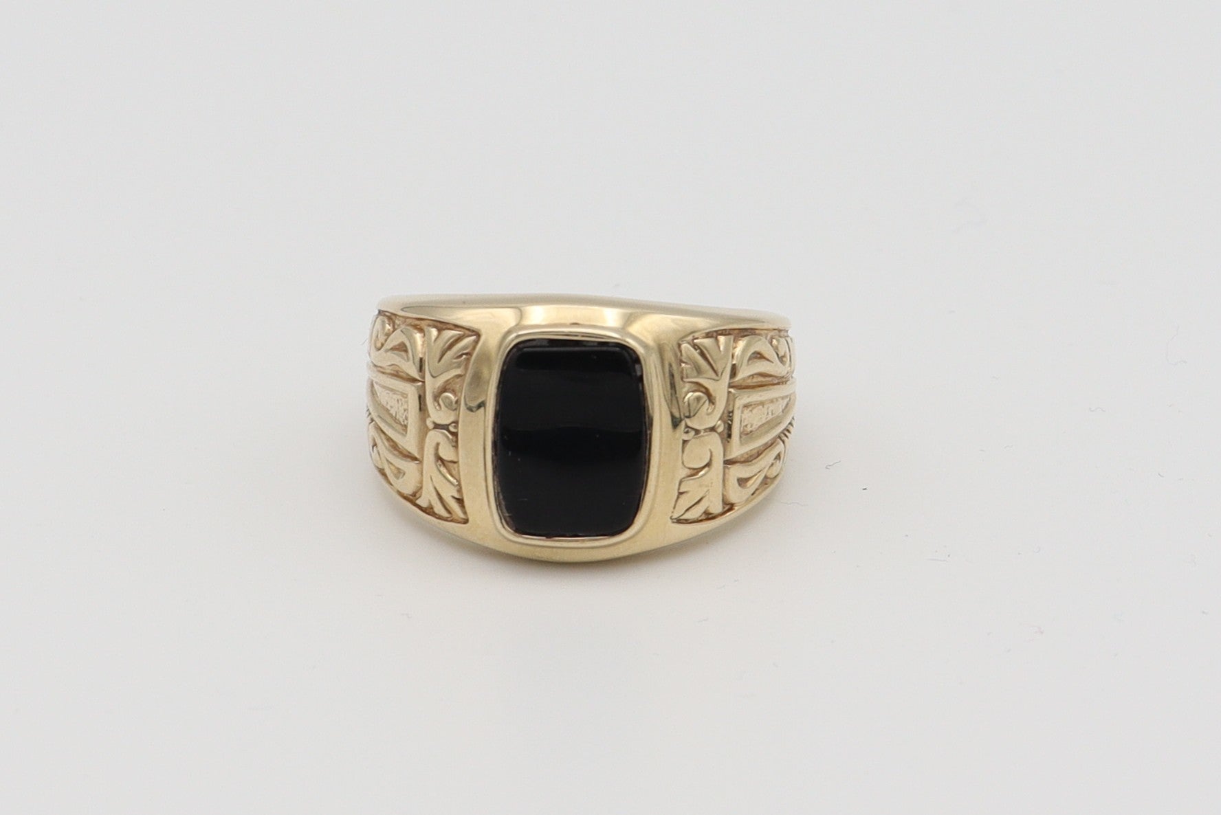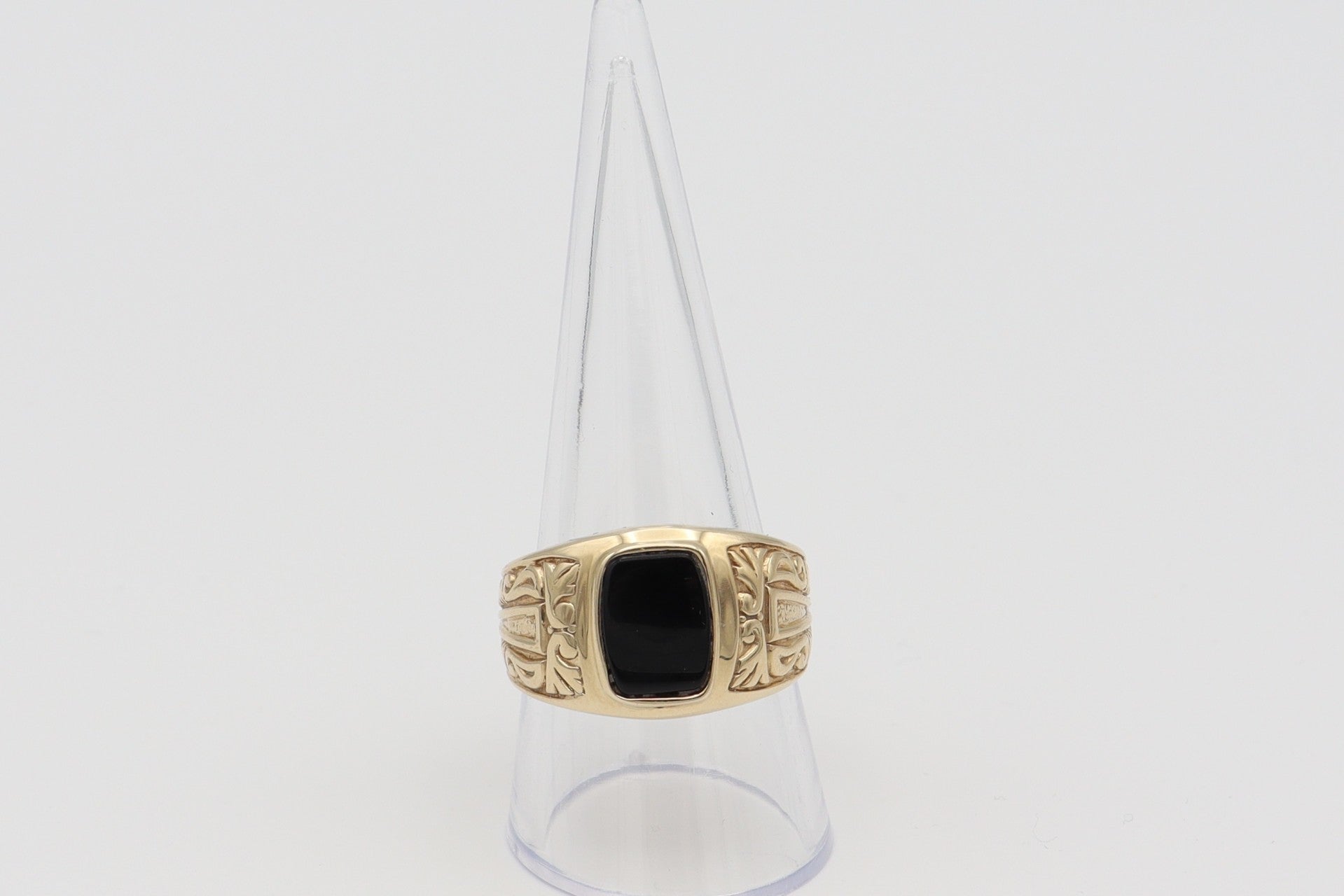 Bewerkte herenring met onyx. Maat: 20. 2020/34.
