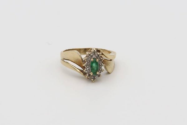 Vintage ring met smaragd en 10x diamant. Maat: 18. Nr: 2020/57.