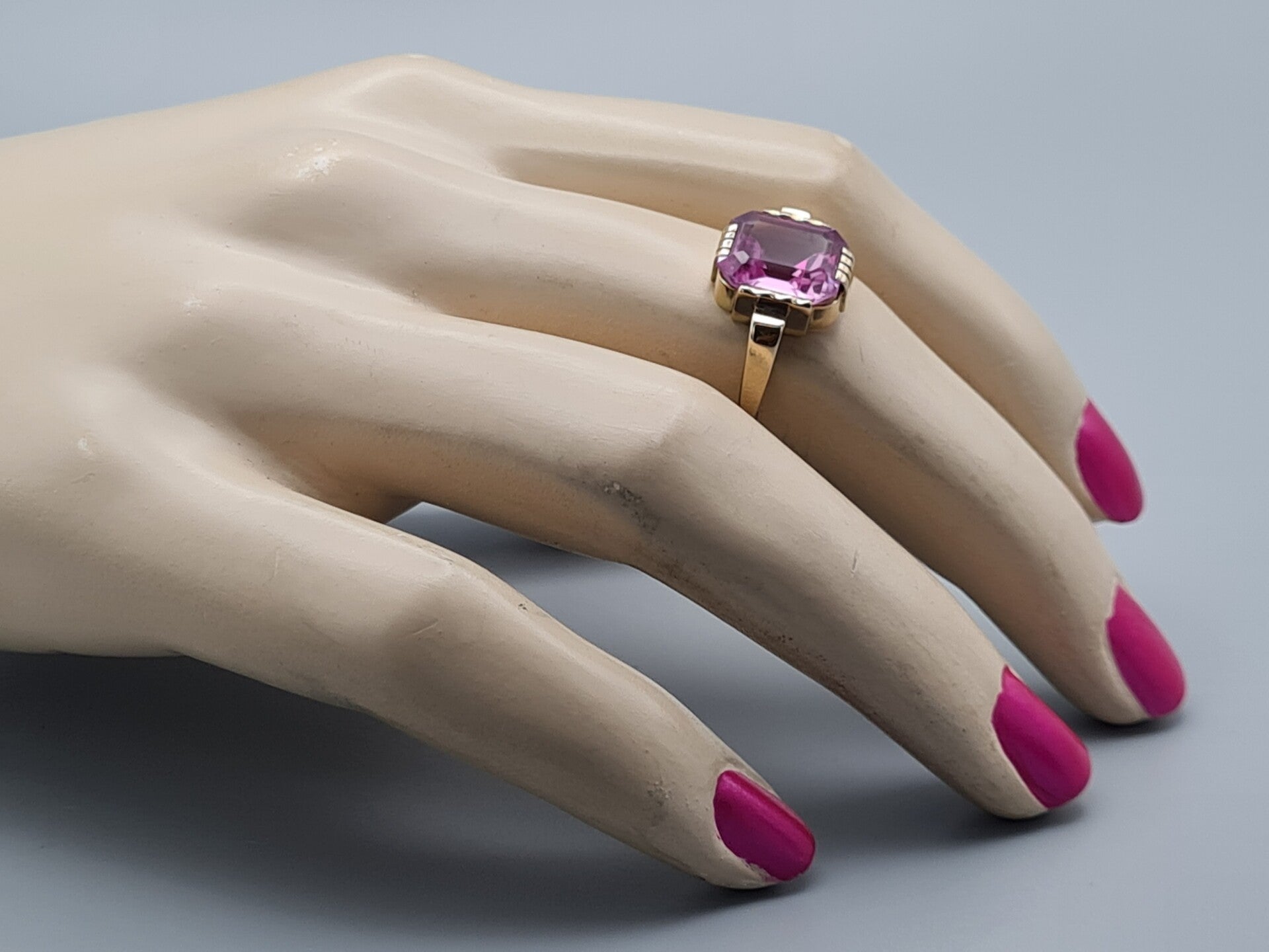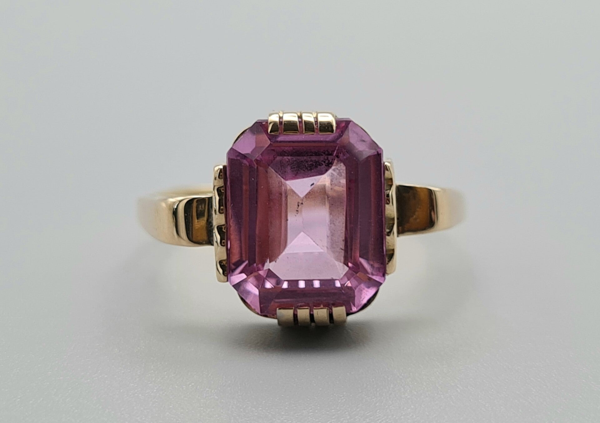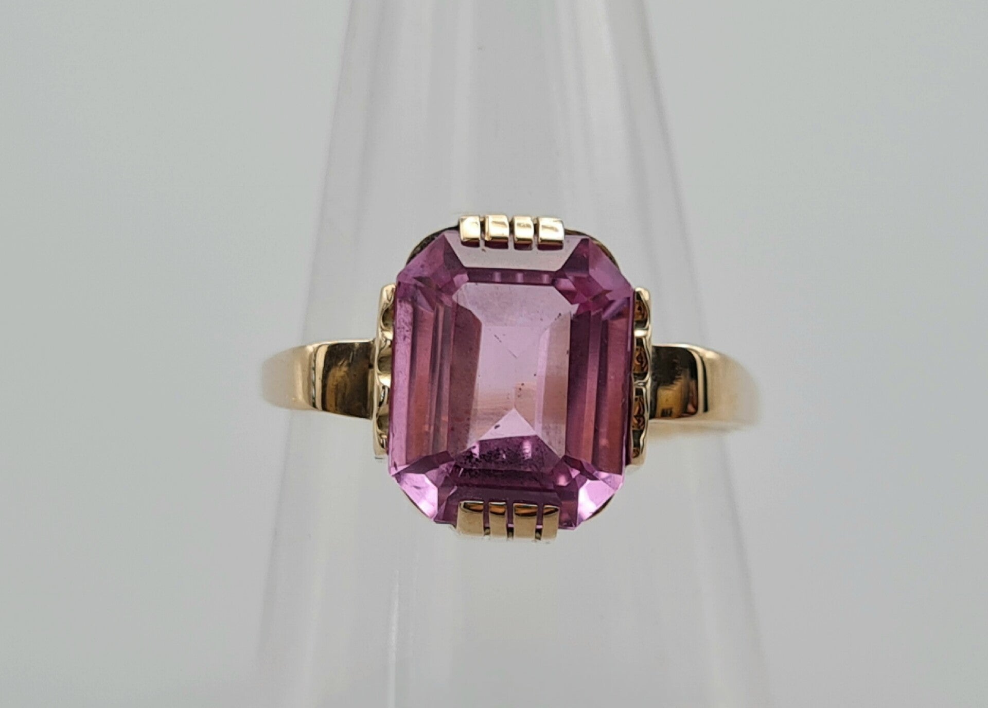 Gouden antieke Art Deco ring met edelsteen roze beryl/beril. 2023/464.