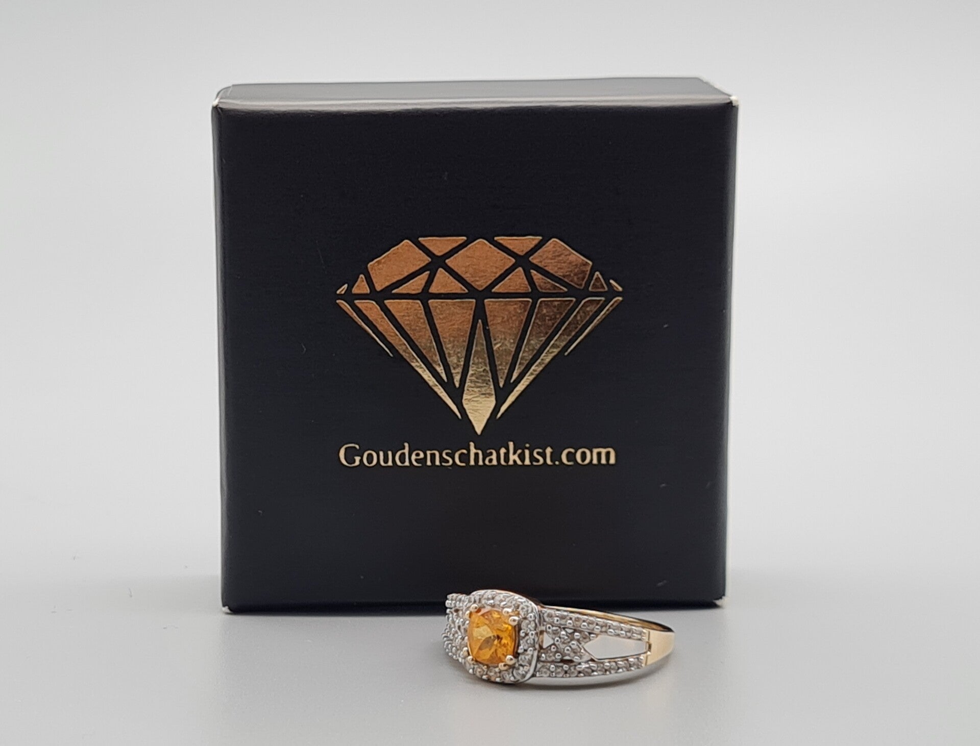 Vintage ring met edelsteen citrien en witte saffier. 2023/477