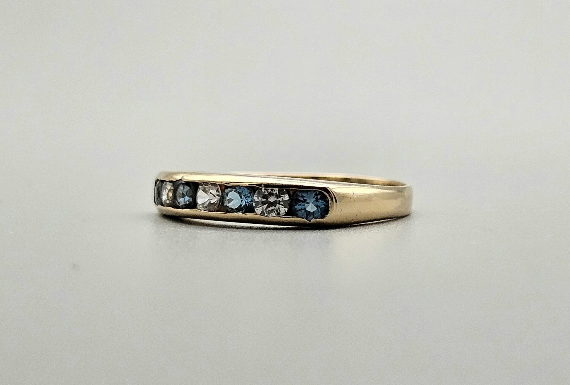 Vintage ring met edelsteen aquamarijn en witte saffier. 2023/485