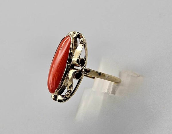 Gouden antieke ring met edelsteen bloedkoraal. 2023/506