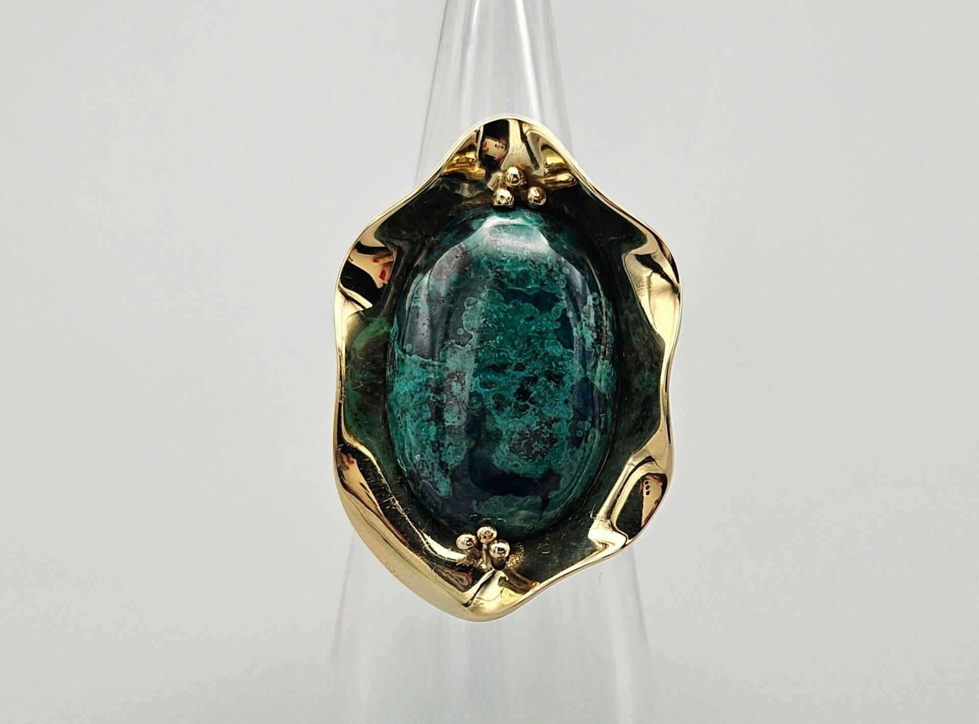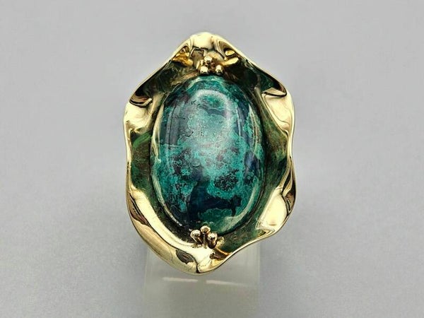 Gouden antieke design ring met edelsteen groene opaal. 2023/521