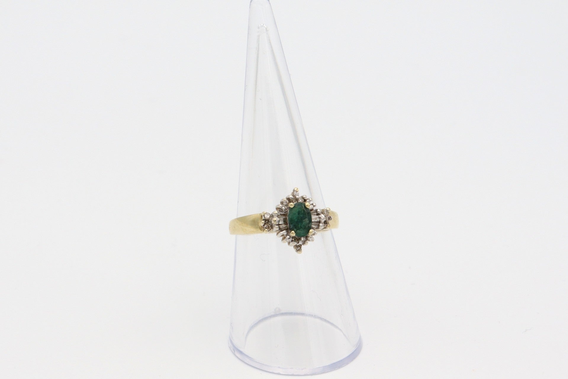 10 Karaat. Ring met smaragd en diamant. Maat: 17.8. Nr: 2020/163