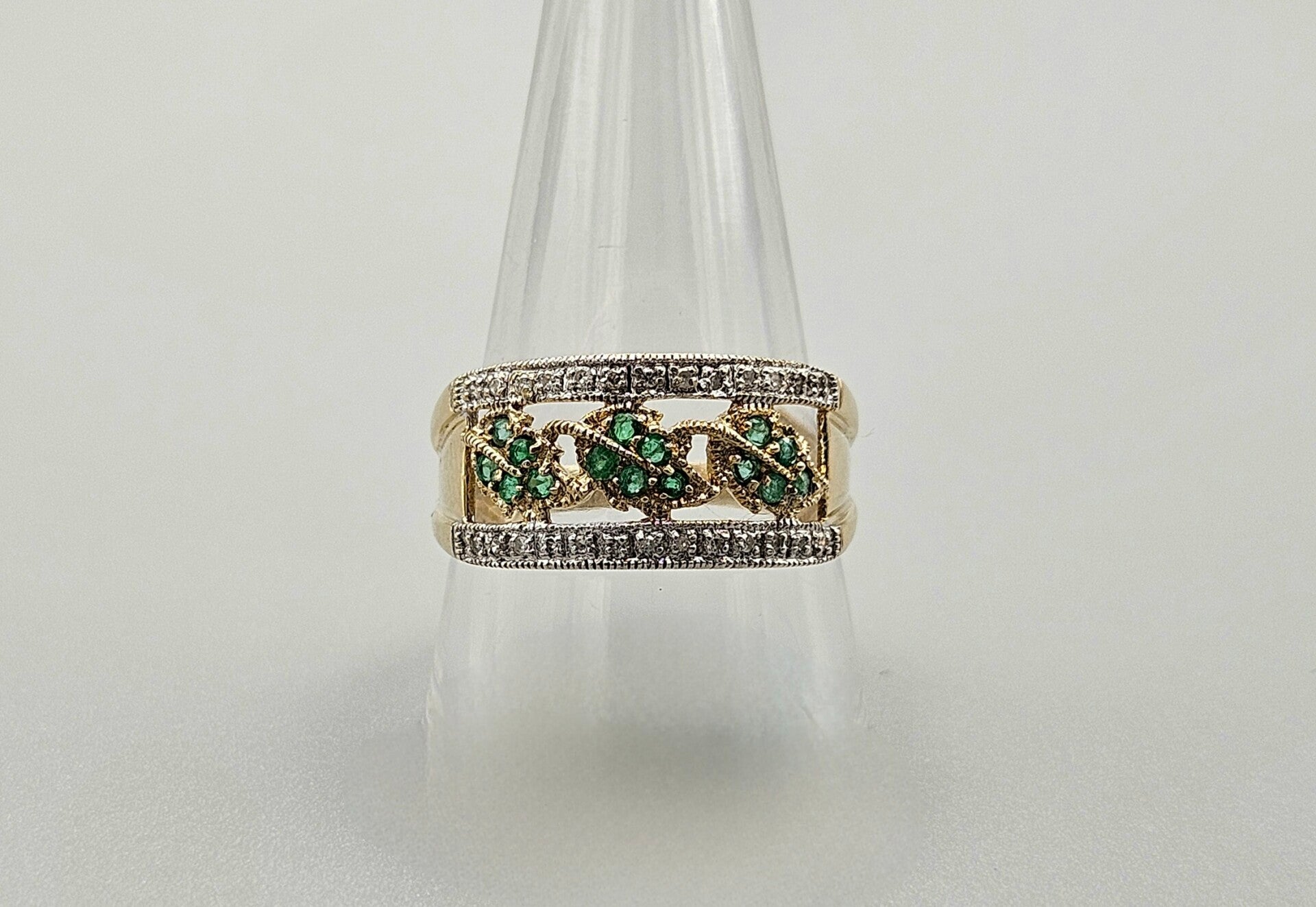 Vintage ring met edelsteen smaragd en diamanten. 2023/549
