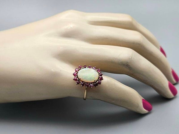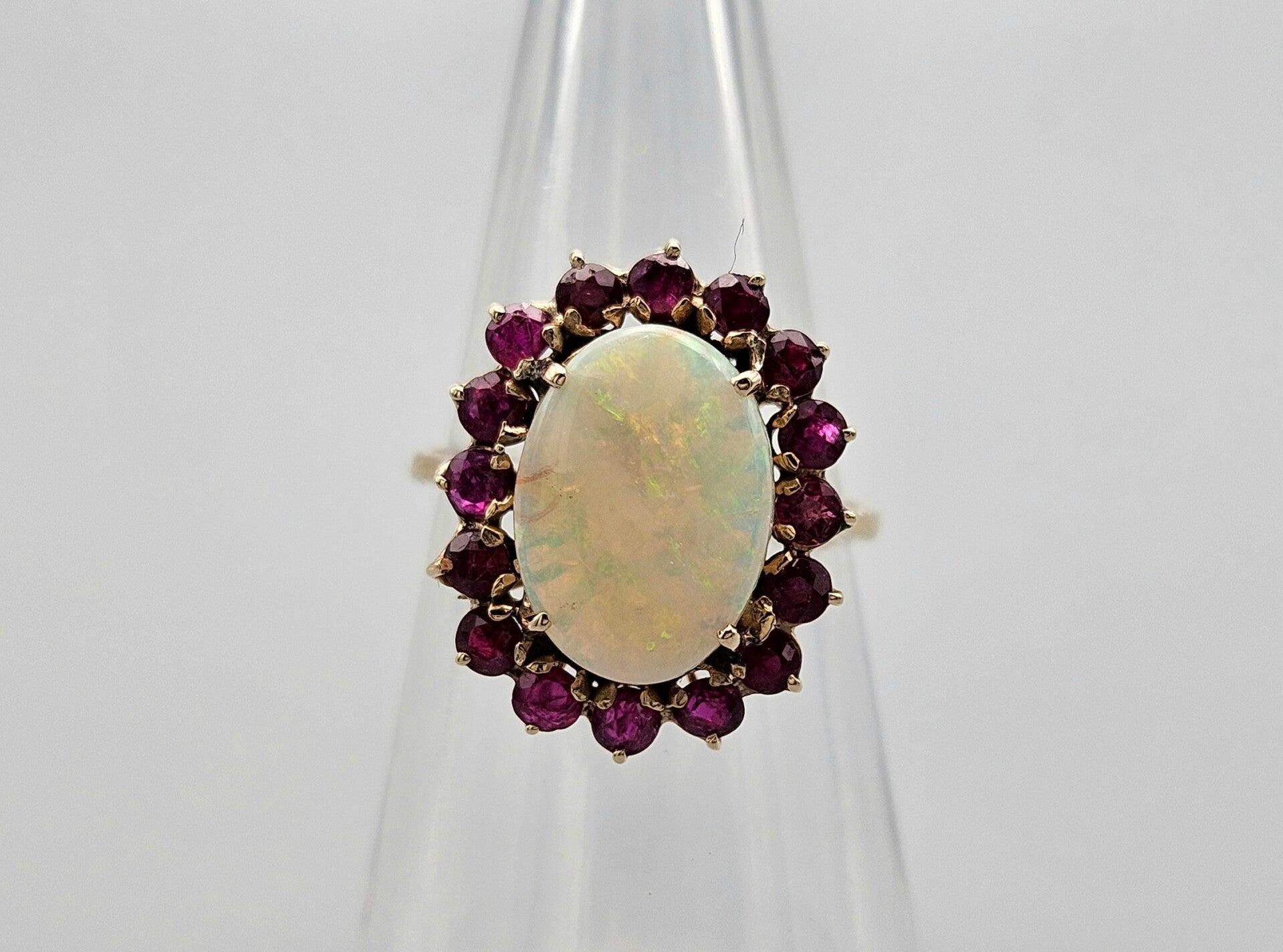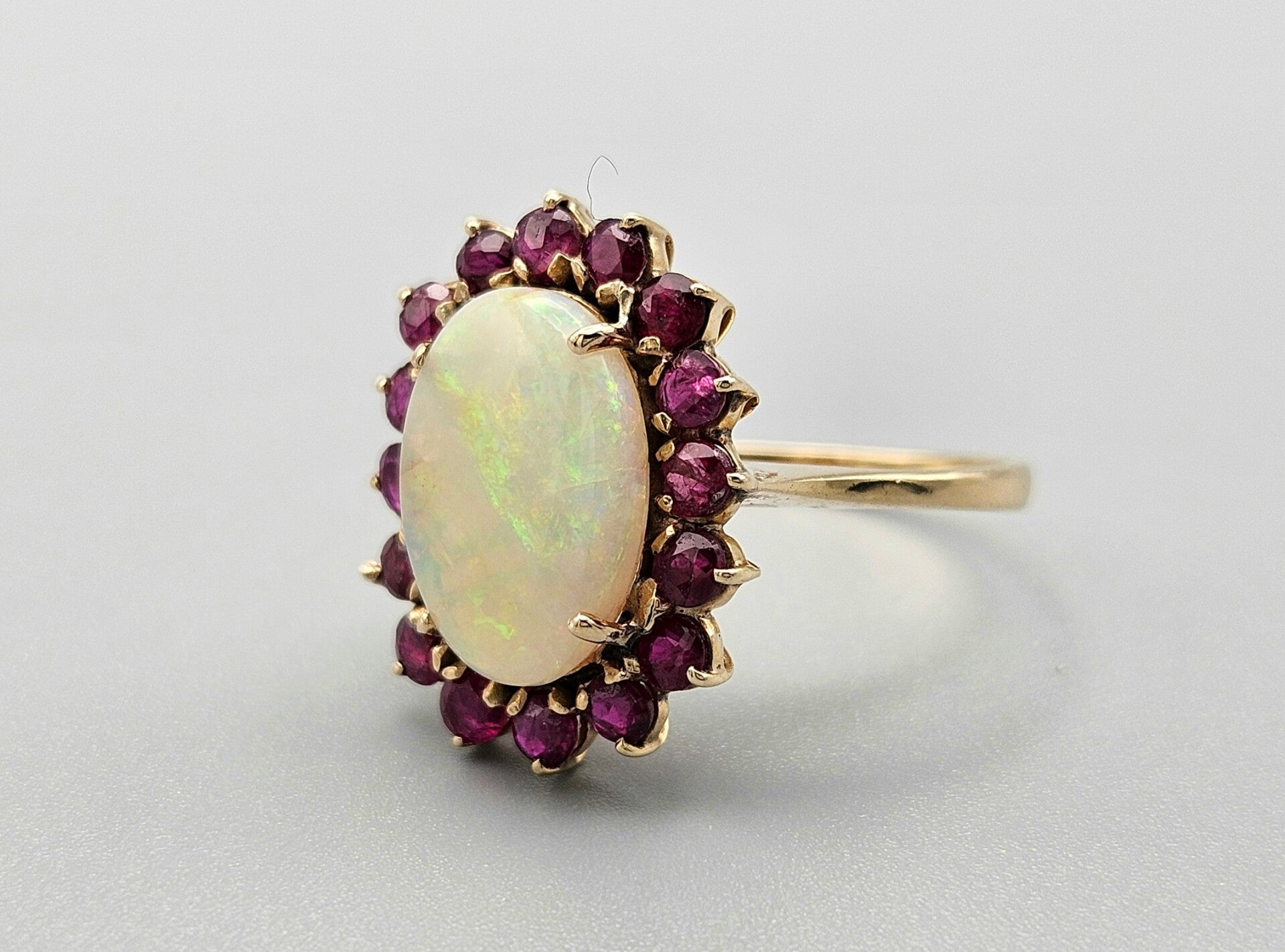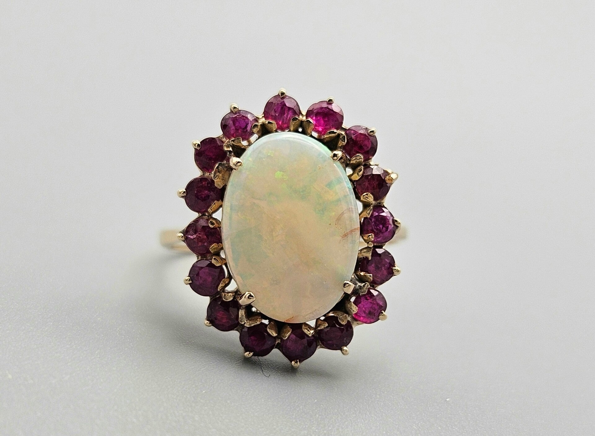 Vintage ring met edelsteen opaal en toermalijn. 2023/594