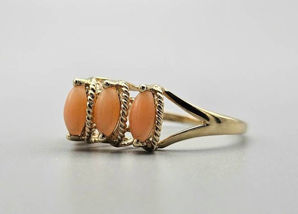Vintage ring met edelsteen zalm coraal. 2023/605.
