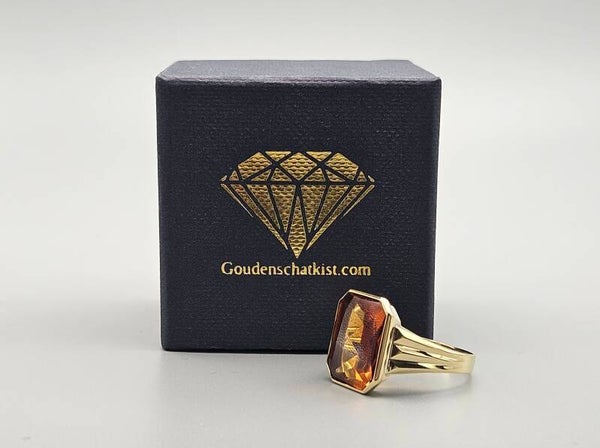 Gouden antieke art deco ring met edelsteen Saffier. 2024/41.