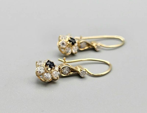Vintage oorbellen met saffier en zirkonia's. 2024/63