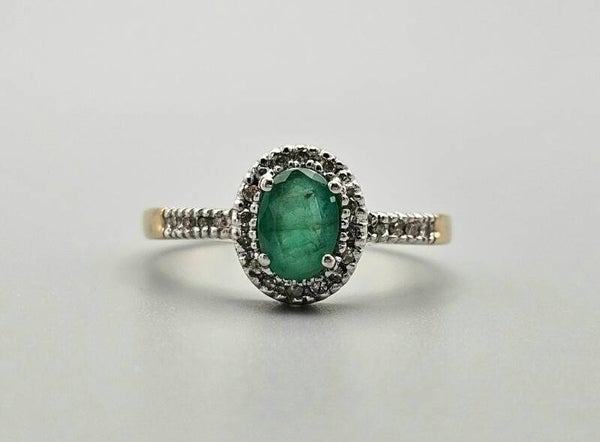 Vintage ring met edelsteen smaragd en diamanten. 2024/76.