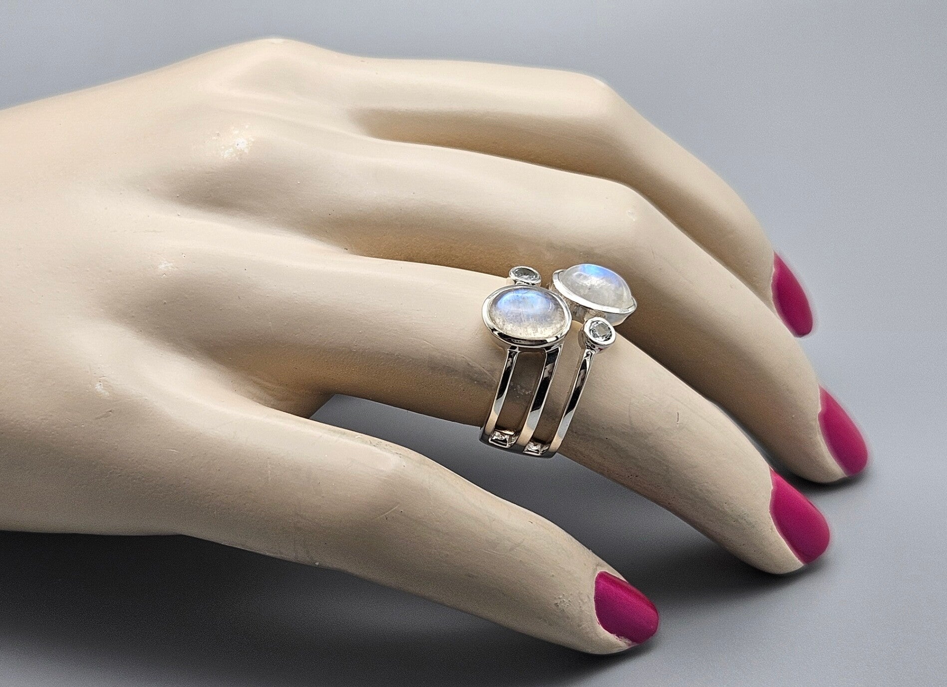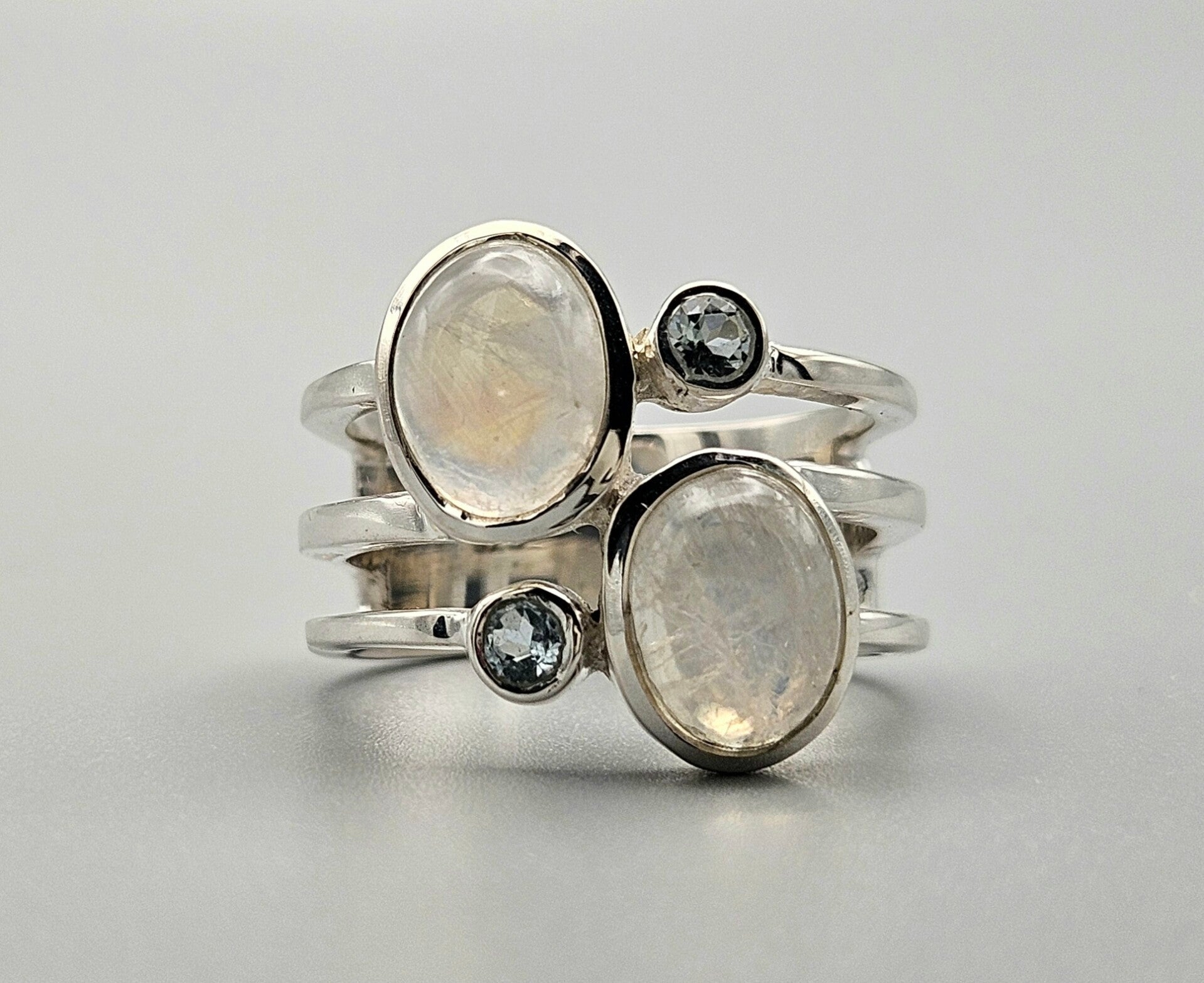 Exclusieve vintage zilveren ring met edelsteen maansteen en topaas. 2024/Z10