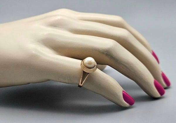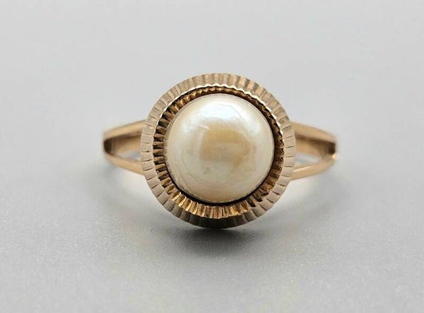 21.8 Krt. Vintage ring met edelsteen parel. 2024/161.
