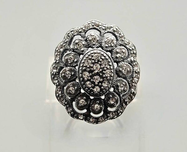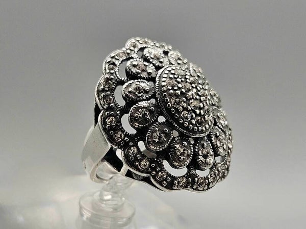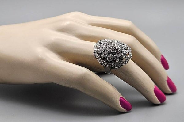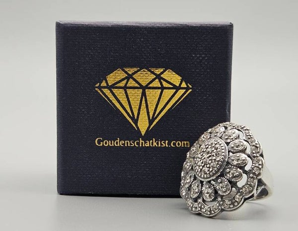 Grote zilveren Art Nouveau cocktailring met Swarovski Kristallen. 2024/Z20.