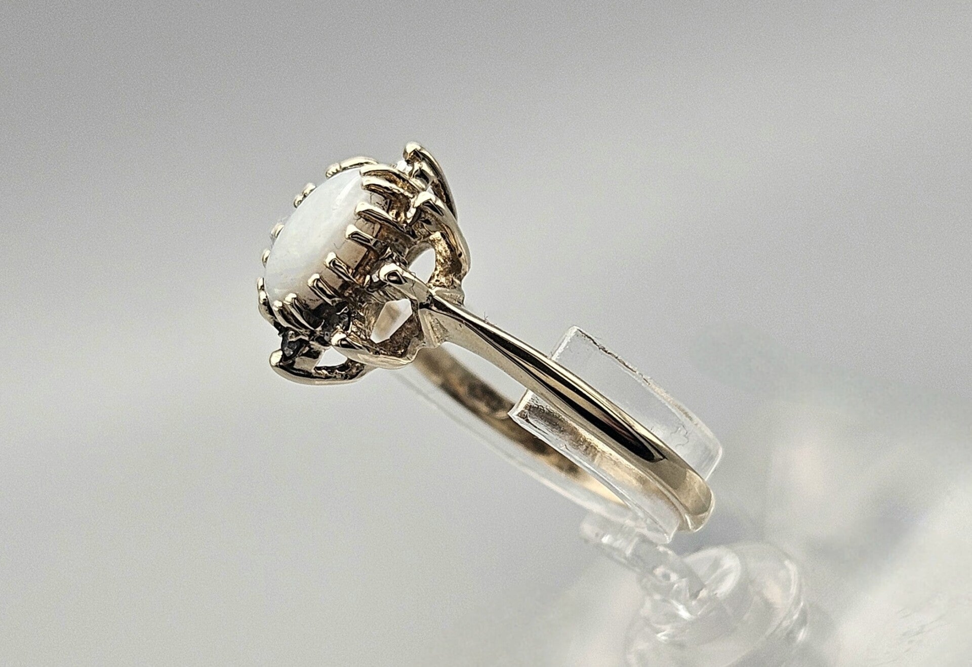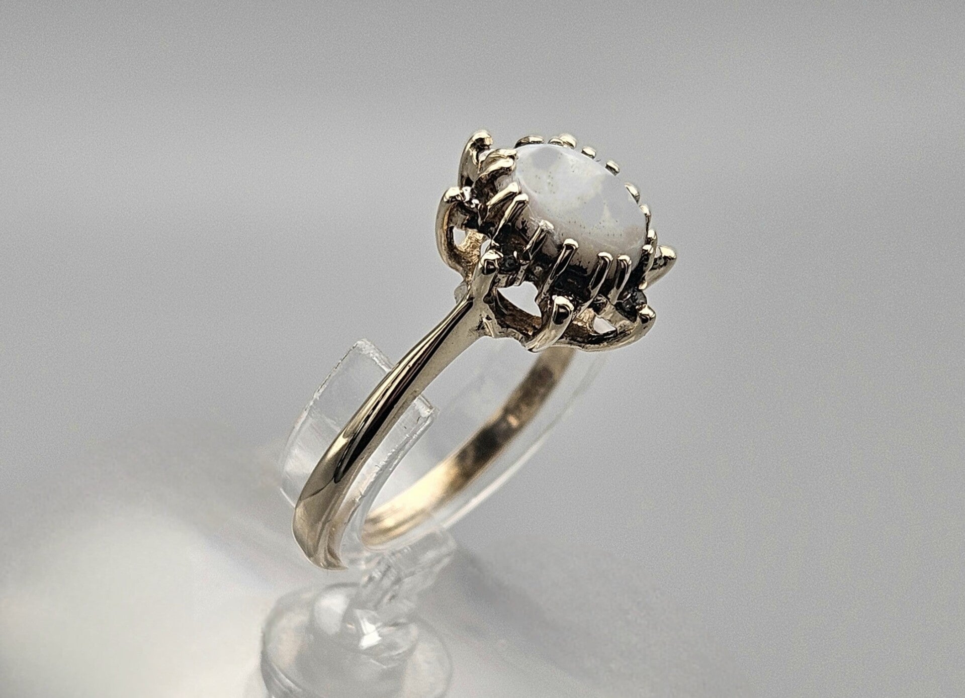 Vintage ring met edelsteen opaal en champagne diamant. 2024/174.