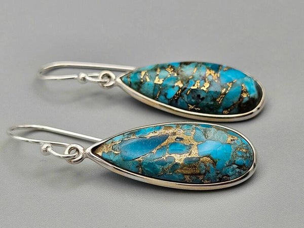 Unieke zilveren oorbellen met koper turkooise. Een prachtige set met edelstenen koper turkooise. Deze leuke oorbellen zijn vervaardigd uit het eerste gehalte zilver (925/1000).