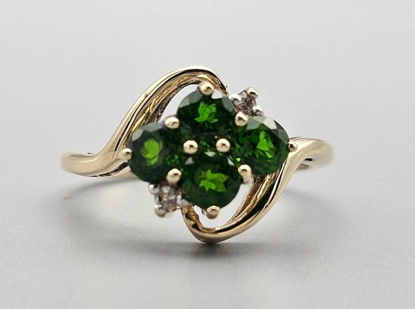 Vintage ring met edelsteen smaragd en diamant. 2024/192.