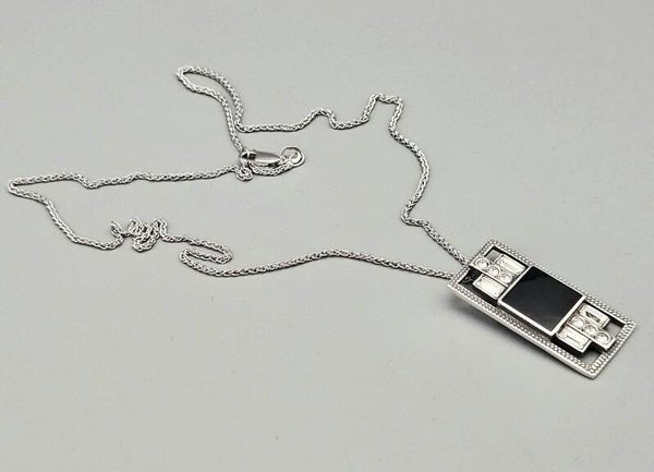 Art Deco ketting met Onyx en Swarovski. Houdt jij van een stijlvolle Art Deco ketting met Hanger? Dan is deze prachtige tijdloze ketting met hanger met onyx en swarovski misschien wat voor jou. De ketting en hanger zijn gemaakt van het hoogste gehalte zilver (925).