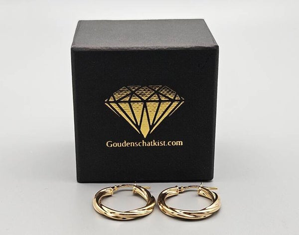 Deze vintage creolen zijn gemaakt van 9 karaat. Ze hebben een diameter van 20 mm. Ze zijn gedraaid dit geeft ze die echte vintage uitstraling. Combineer ze gemakkelijk met andere hoops of studs.