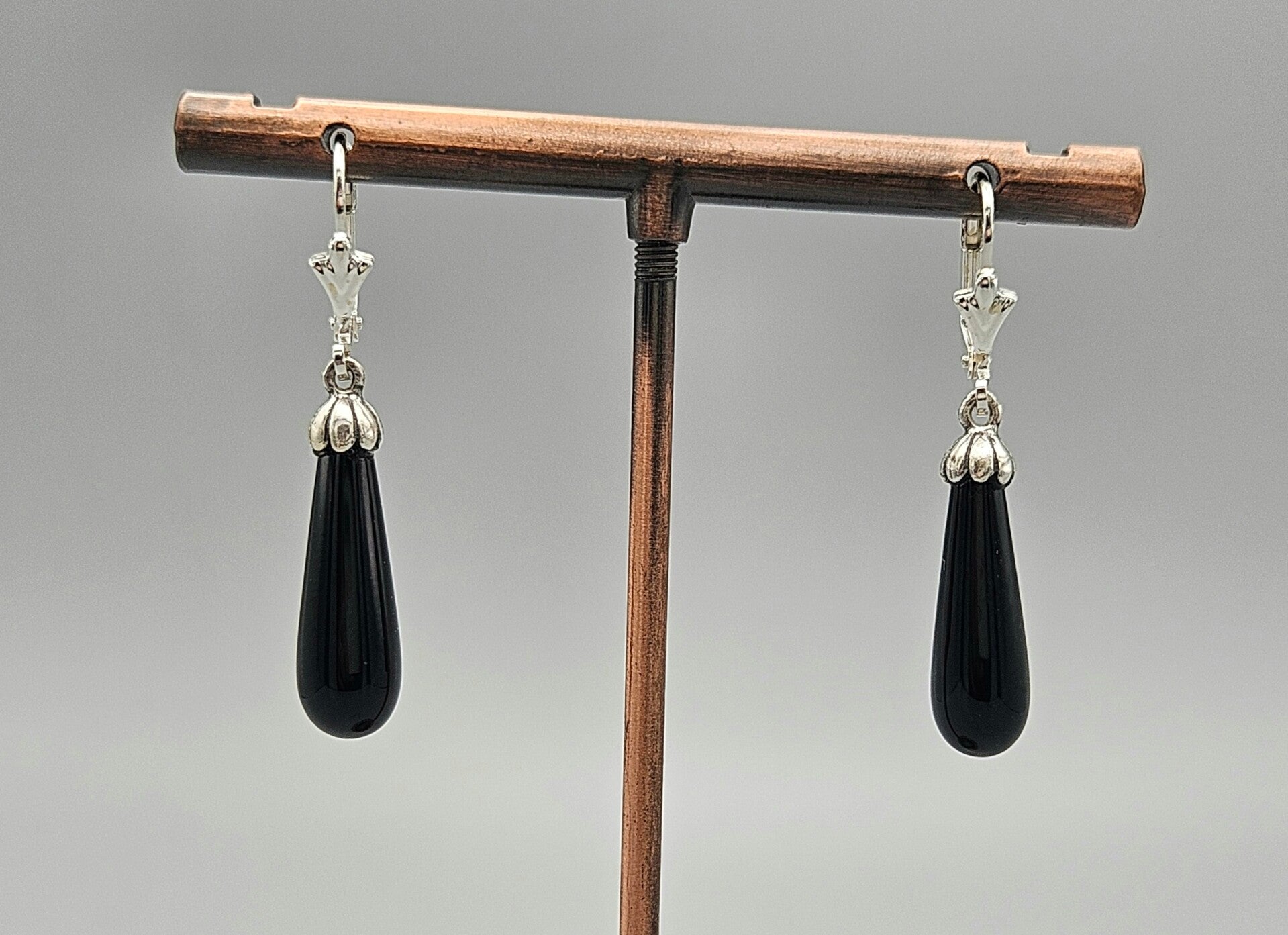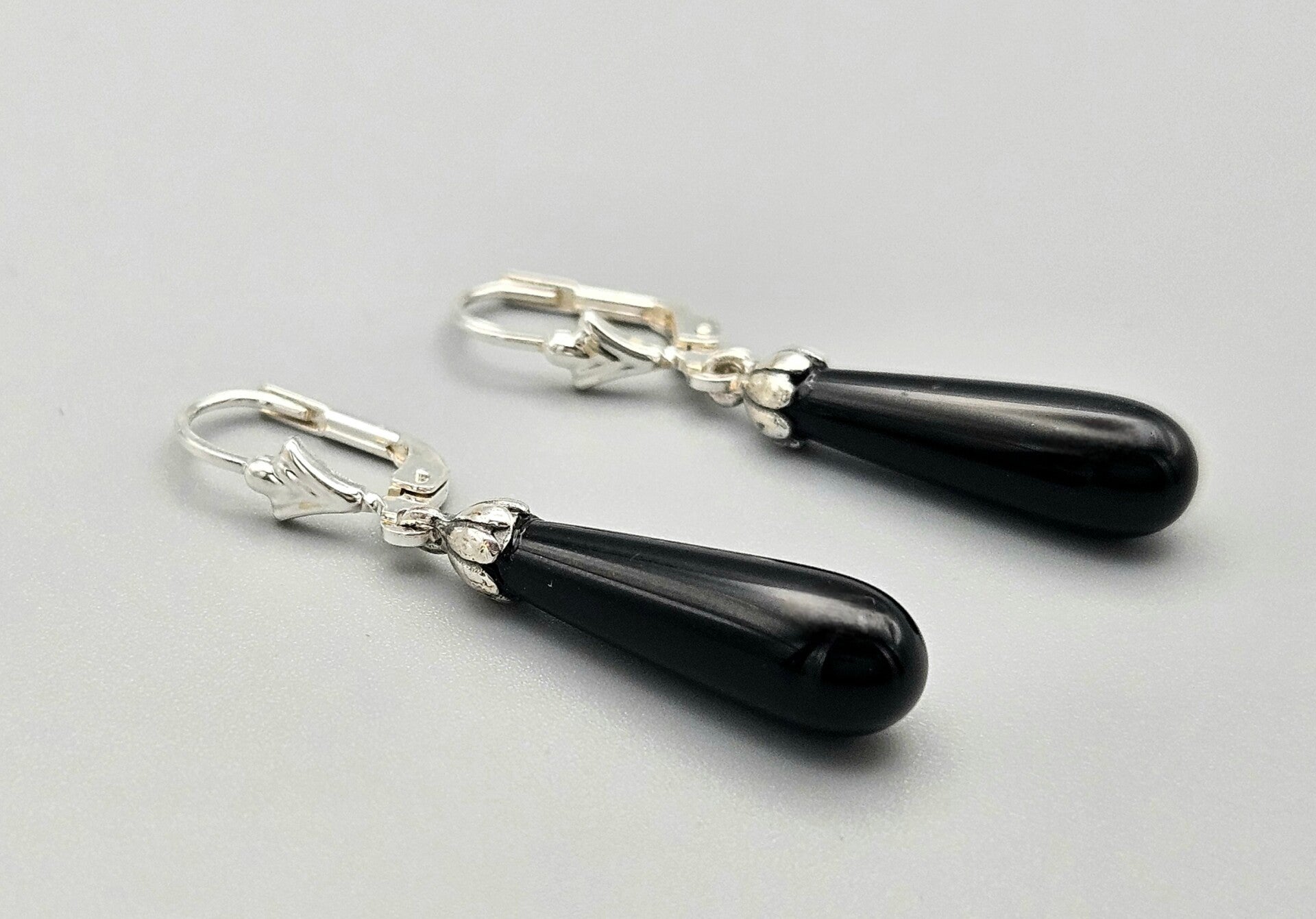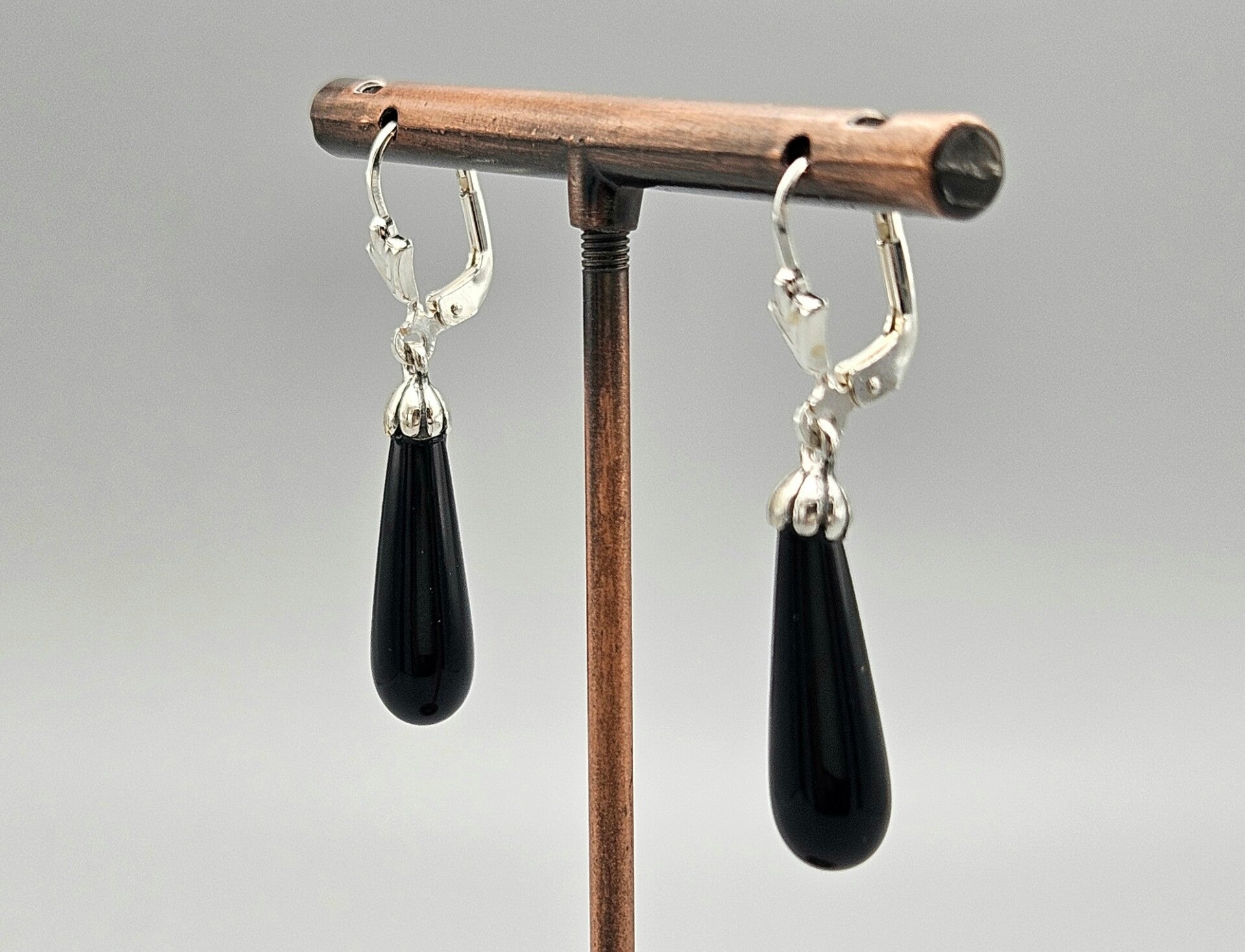 Prachtige zilveren oorbellen met edelsteen onyx. 2024/Z58.