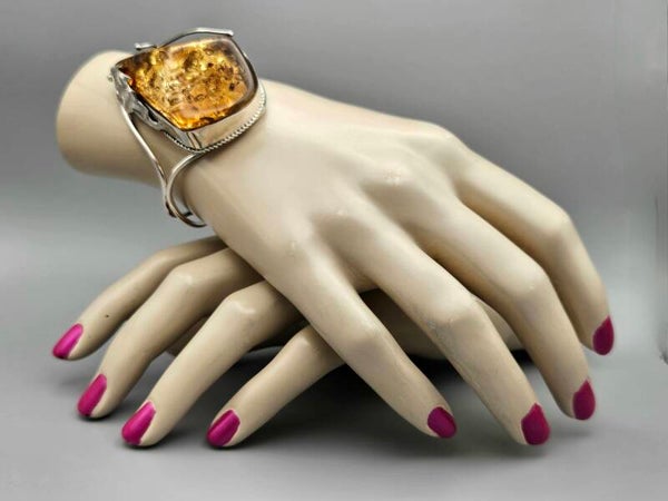 Unieke zilveren klemarmband met barnsteen. 2024/Z62.