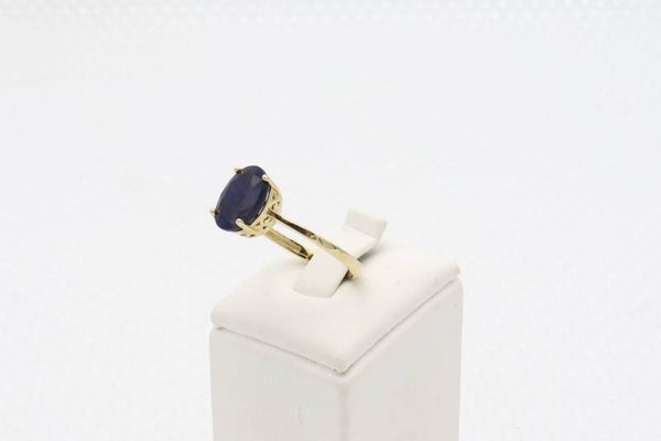 Maat: 17.5.Saffier: 10 mm x 8 mm.Slijpvorm: Facet.Kleur Goud: Geel goud.Gemerkt : 585Conditie: Z.g.a.n.(typefouten voorbehouden)