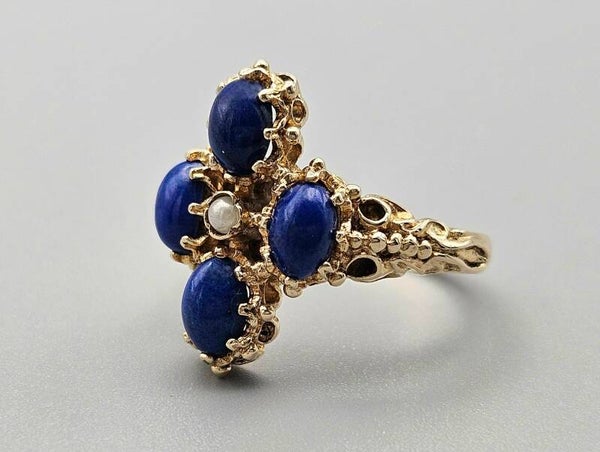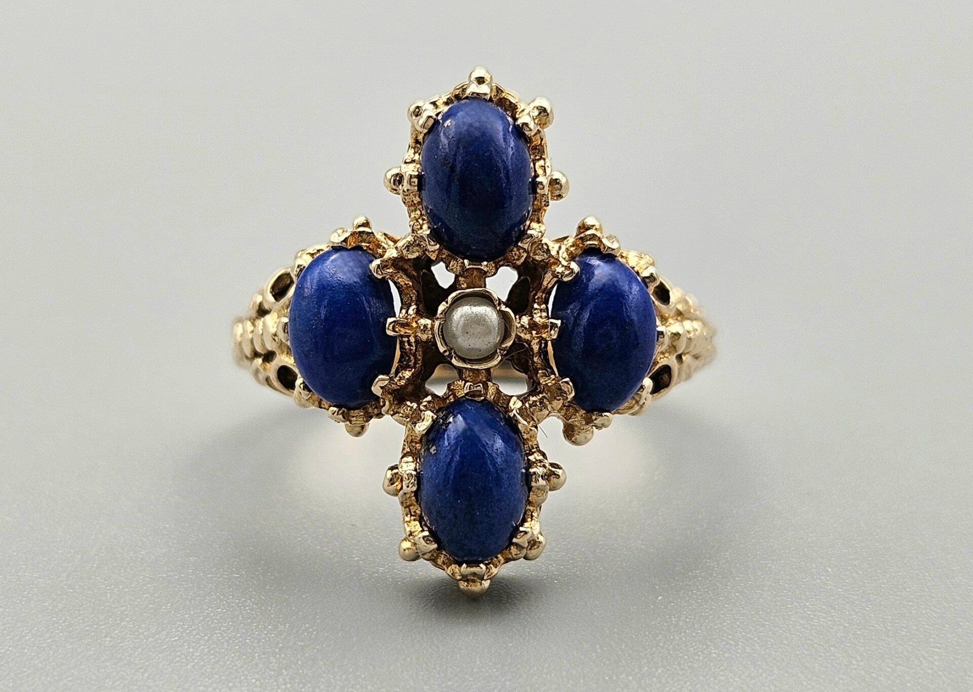 Vintage ring met edelsteen lapis lazuli en parel. 2024/228.