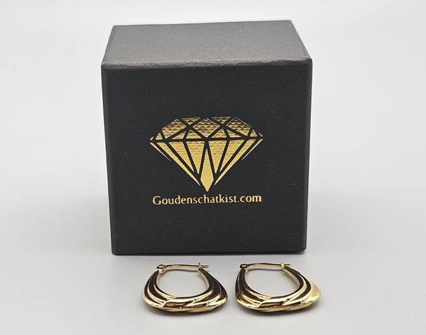 Deze bijzonder bewerkte gipsy stijl vintage gouden oorbellen zijn gemaakt van 9 karaat goud. Door hun vorm zijn ze net even anders dan de klassieke creolen.
