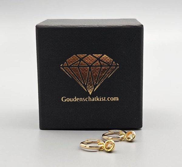 Deze gouden mini oorbellen zijn gemaakt van 14 karaat geelgoud. De klap creolen hebben door de kleur combinatie van de citrien een hele stijlvolle uitstraling.