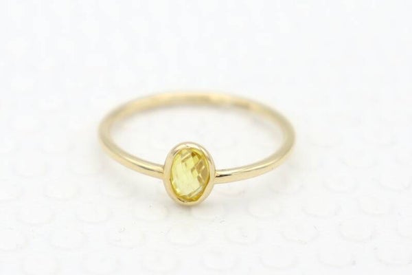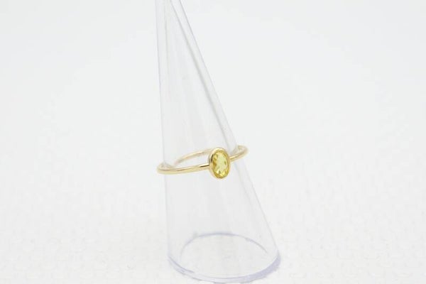 Maat: 17.75.Citrien: 7 mm x 4 mm.Slijpvorm: Facet.Kleur Goud: Geel goud.Gemerkt : 585Conditie: Z.g.a.n.(typefouten voorbehouden)