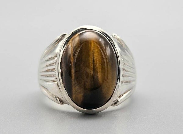 Zilveren herenring met edelsteen tijgeroog. 2024/Z66.