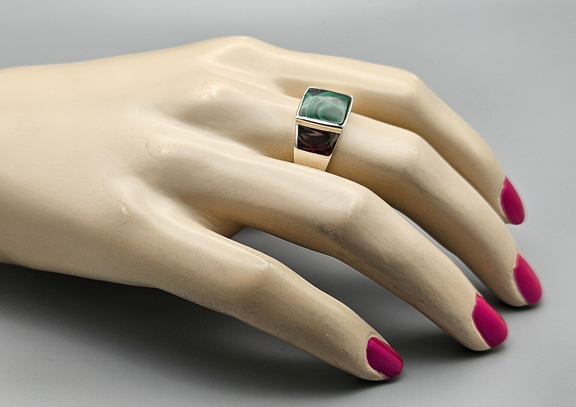 Zilveren ring met edelsteen malachiet. 2024/Z71