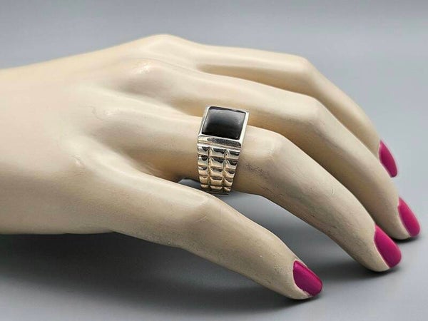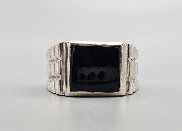 Zilveren bewerkte heren ring met edelsteen onyx. 2024/Z73.