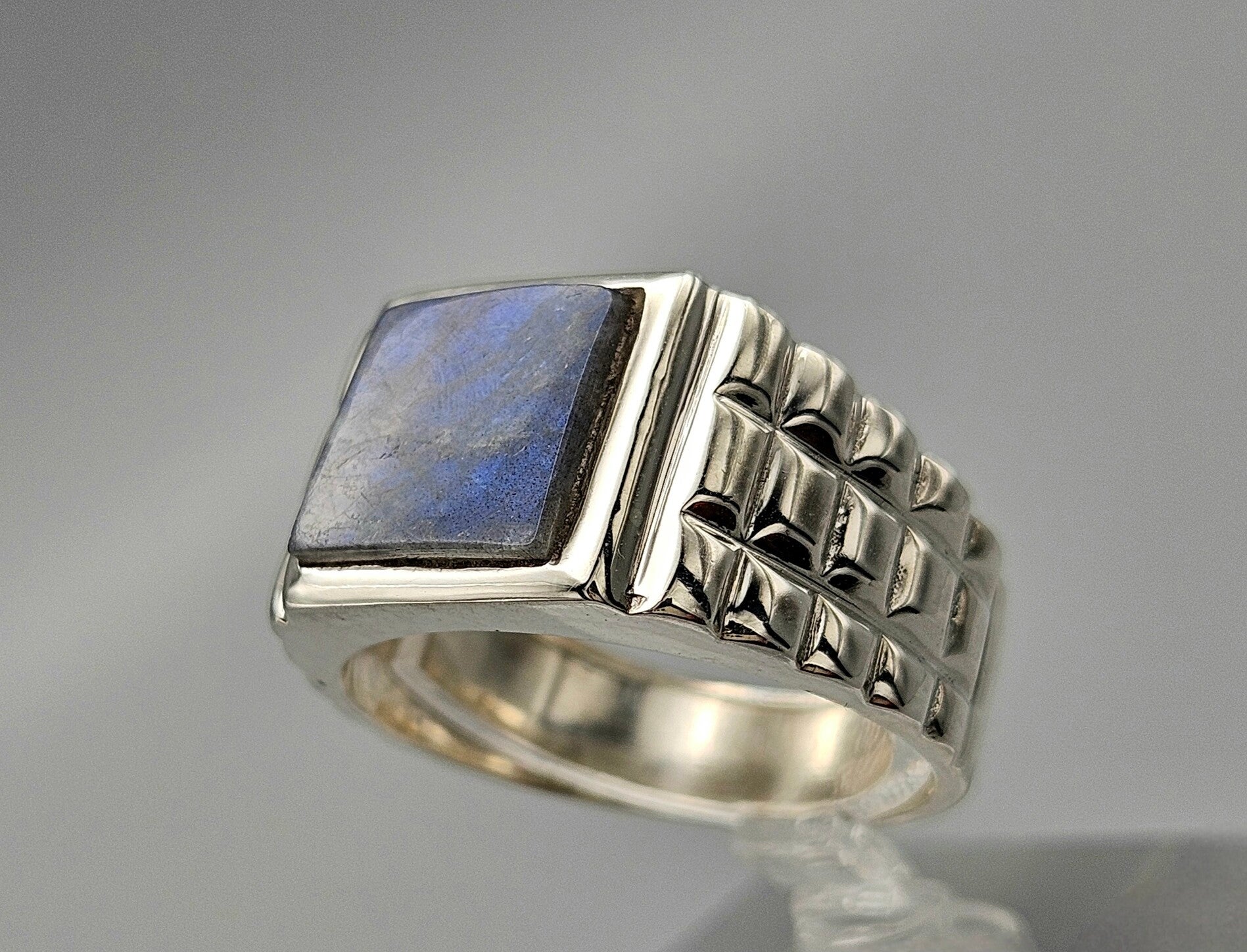 Zilveren bewerkte heren ring met edelsteen labradoriet. 2024/Z74.