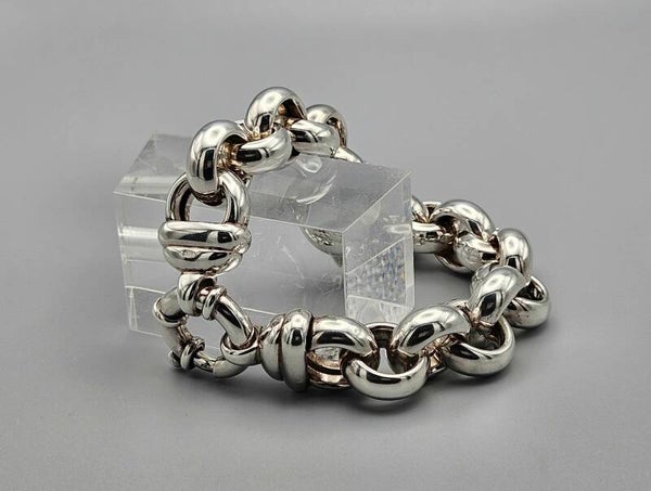 Deze zilveren armband met jasseron schakel is gemaakt van 925 zilver. De mooie veerring sluiting is gemaakt van 925 zilver. Een tijdloze armband die zowel solo, als gecombineerd met andere armbanden gedragen kan worden.