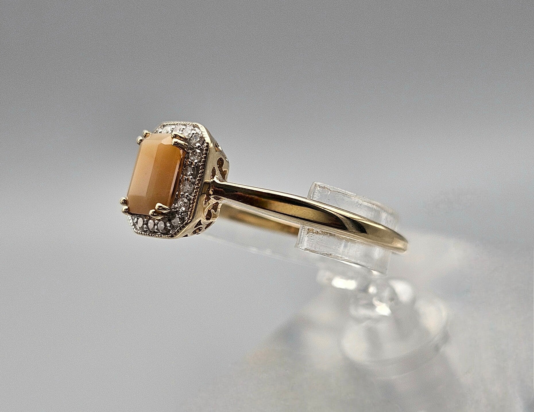 Vintage ring met edelsteen perzik aventurijn en diamant. 2024/289.