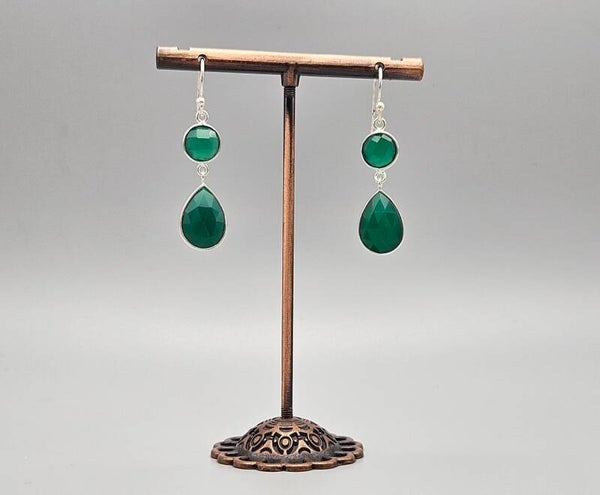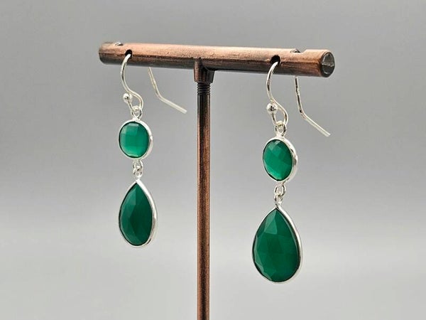 Zilveren oorbellen met edelsteen groene onyx. 2024/Z91.