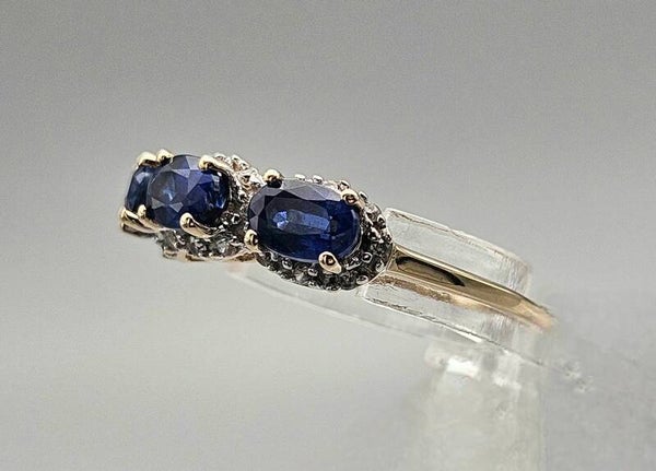 Vintage ring met edelsteen saffier en diamant. 2024/311.