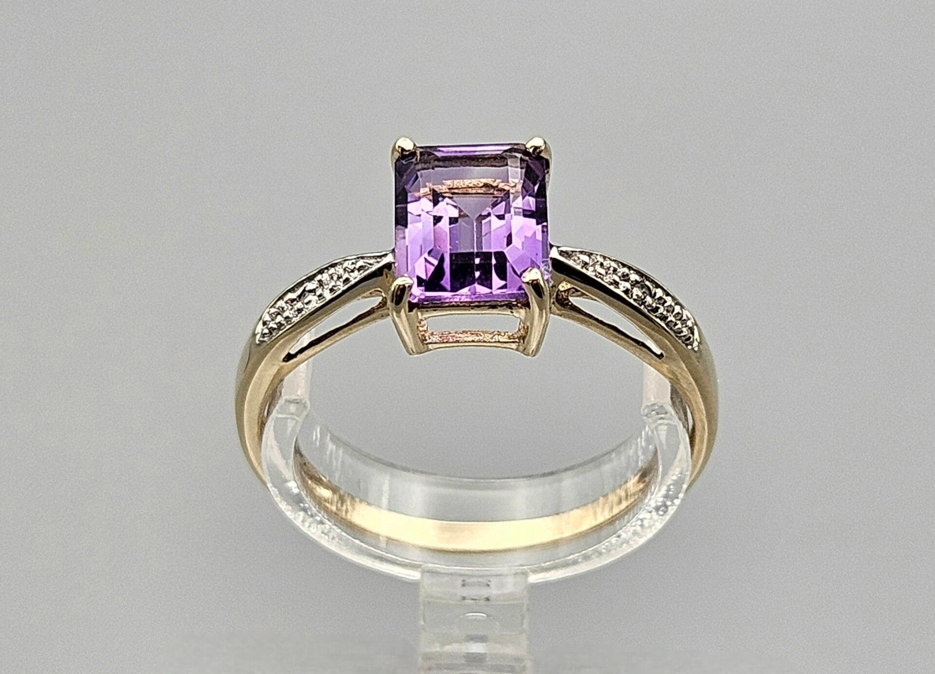 Vintage ring met edelsteen amethist en diamant. 2024/313.